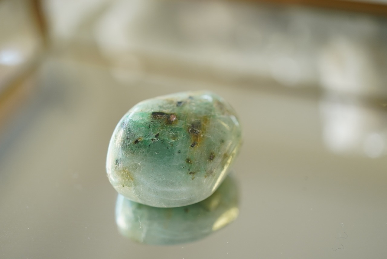 アズライトinグリーンムーンストーン タンブルS マダガスカル産