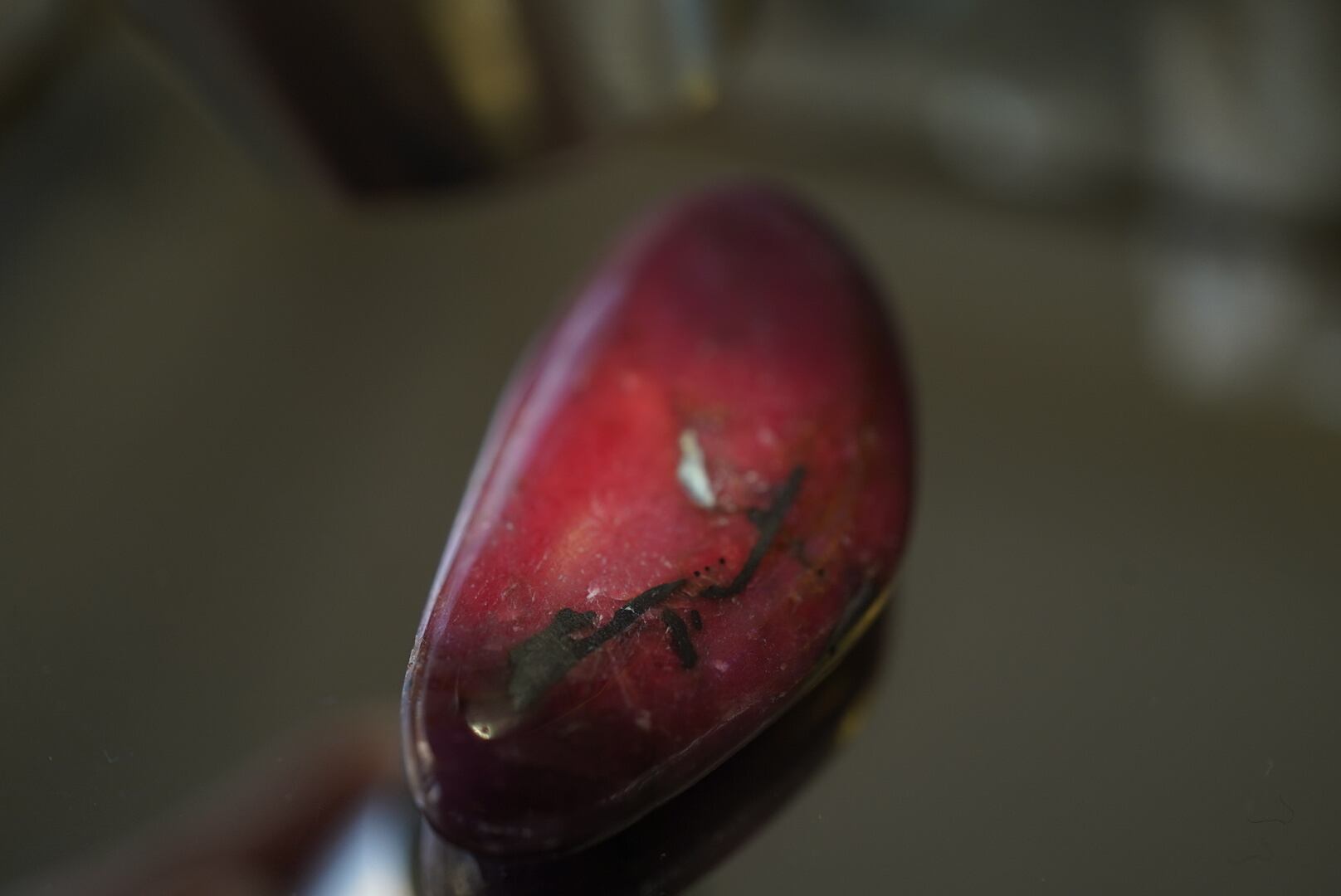 一見シックに見える赤色が特徴のこのタンブルは、まるで情熱の象徴のような美しさを持っています。