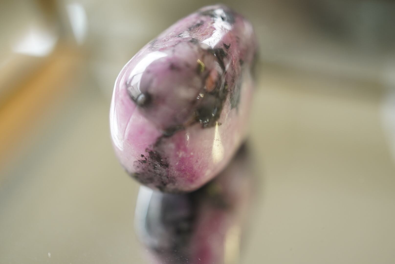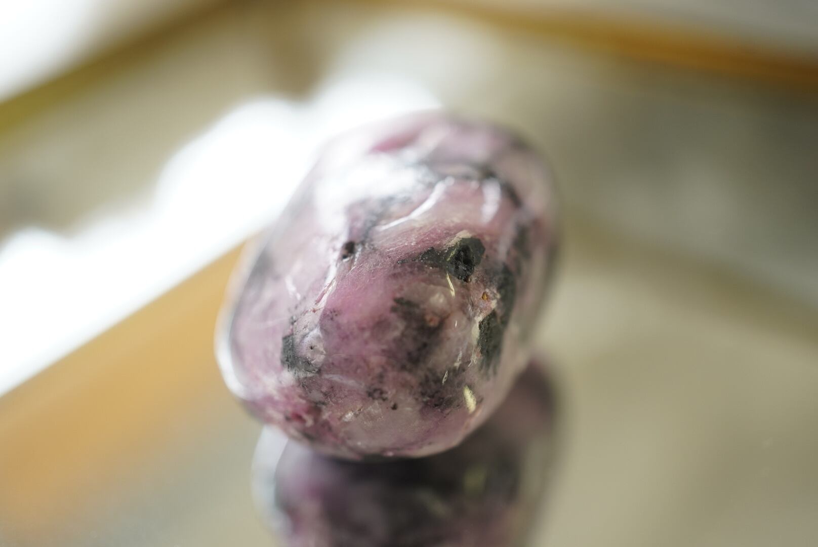 鮮やかな青みのピンクが目を引くこのタンブルは、持つ者に深い癒しをもたらす神秘的な魅力を秘めています。